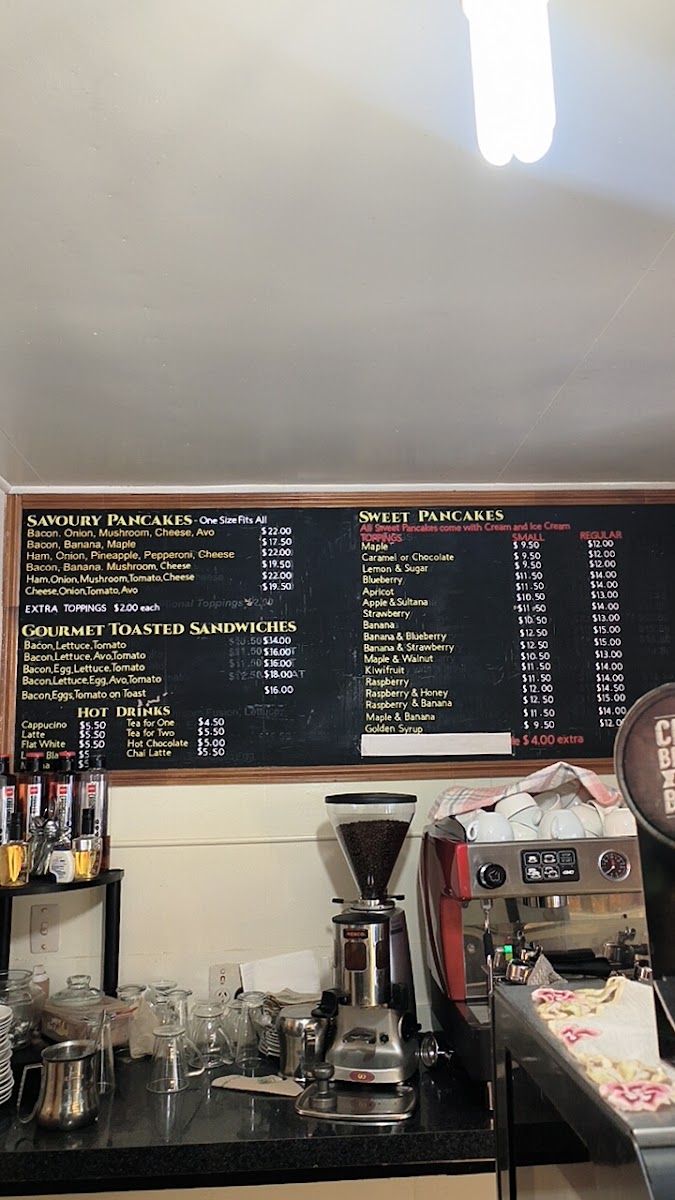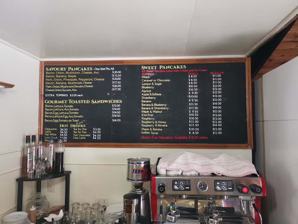 The menu at Athenree Pancake House offers a straightforward, comforting selection that suits its cozy café setting. Here you’ll find a balance of sweet and savory pancakes alongside classic hot drinks and refreshing milkshakes — ideal for a relaxed breakfast, brunch, or a casual stop during a day out in the Athenree Gorge.